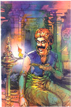 | Vajrabahoo(Mahendra Pallava in disguise) reads the message given by Naganandi after stealing it from Paranjyothi. | ![]() |